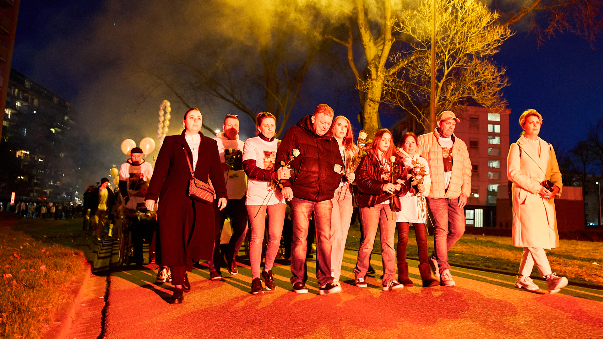 Witte hartjesballonnen zweven aan touwtjes in de lucht boven de muisstille stoet. Met een stille tocht door Schiedam werd vanavond de doodgestoken Joni (13) herdacht. Familie, vrienden, scholieren en buurtbewoners delen hun verdriet met elkaar.