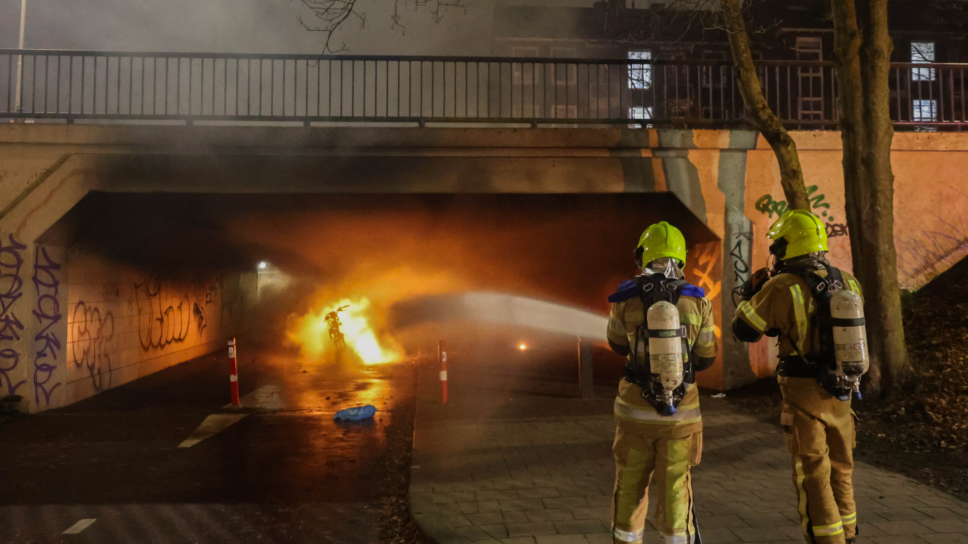 vrijdag 12 december 2025, 07:43 uurEen elektrische deelscooter is in de nacht van donderdag op vrijdag volledig in vlammen opgegaan. Dit gebeurde rond 02.30 uur in een fietstunnel aan de Hogenbanweg, op de grens tussen Schiedam en Rotterdam. Het voertuig was niet te redden.