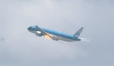 KIJK | Vlammen slaan vlak na opstijgen uit motor KLM-toestel
