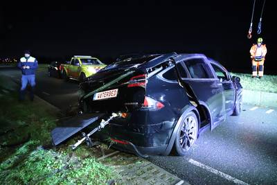 Ritje in Tesla met kenteken ‘Waterbed’ eindigt op bodem van kanaal