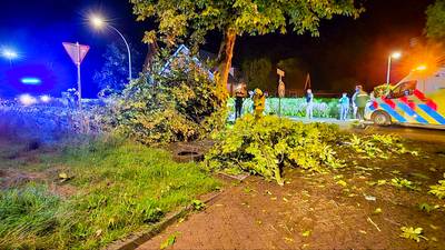 Auto raakt van de weg en knalt tegen boom: vier gewonden, grote tak breekt af en valt boven op auto