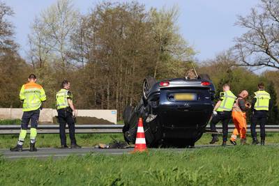 Auto belandt op zijn kop op de A50 in Sint-Oedenrode, snelweg afgesloten