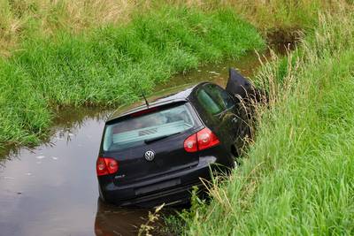 SINT-OEDENRODE - Een auto met twee inzittenden is zaterdagochtend in het water beland langs de A50 bij Sint-Oedenrode. Op de snelweg ontstond daardoor een file.