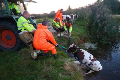 Brandweer en boer redden koe uit het water in Sint-Oedenrode, opvissen blijkt flinke klus