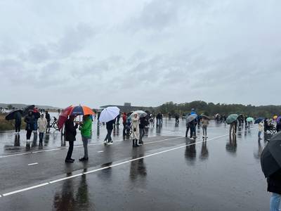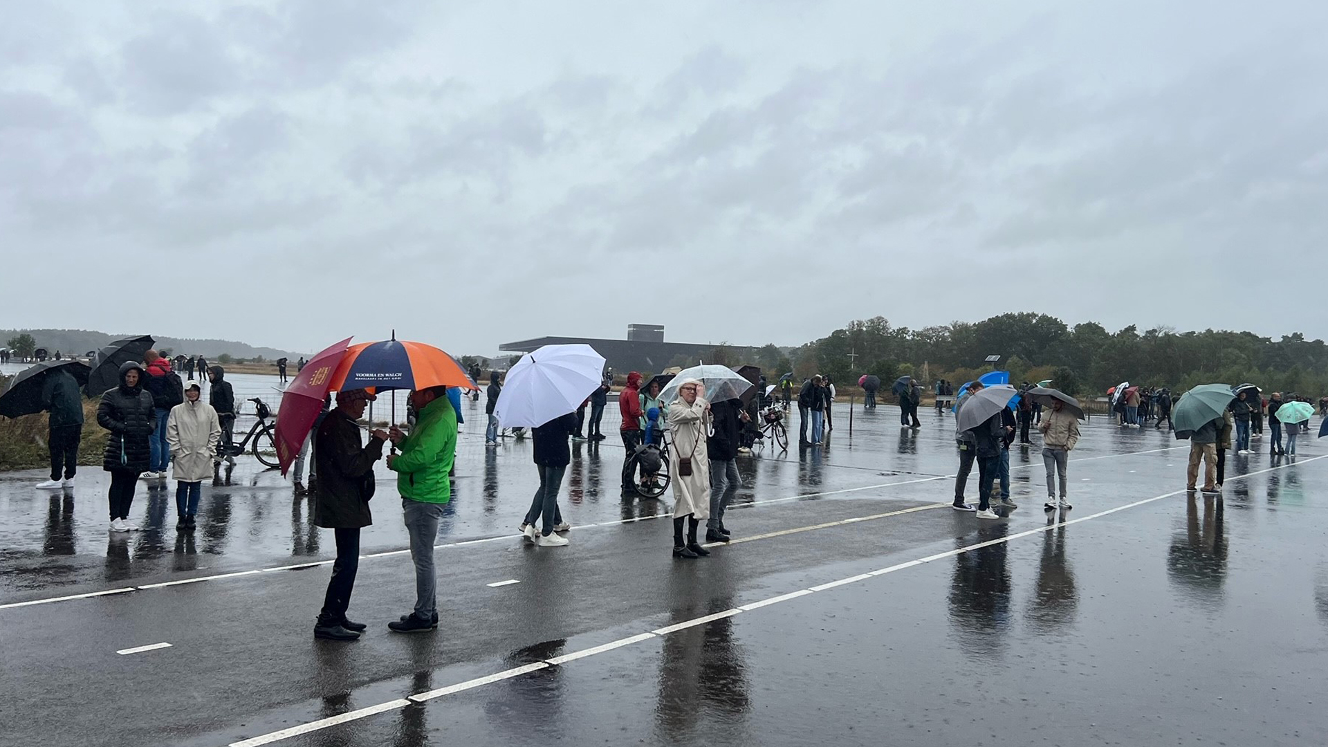 vrijdag 27 september 2024, 19:25 uurVliegtuigspotters, dagjesmensen en medewerkers van het Nationaal Militair Museum in Soesterberg zijn zich nog steeds aan het afdrogen. Dat het regende deze middag vonden ze geen ramp, het missen van de F-16's wel. Op het laatste moment bogen de straaljagers af.