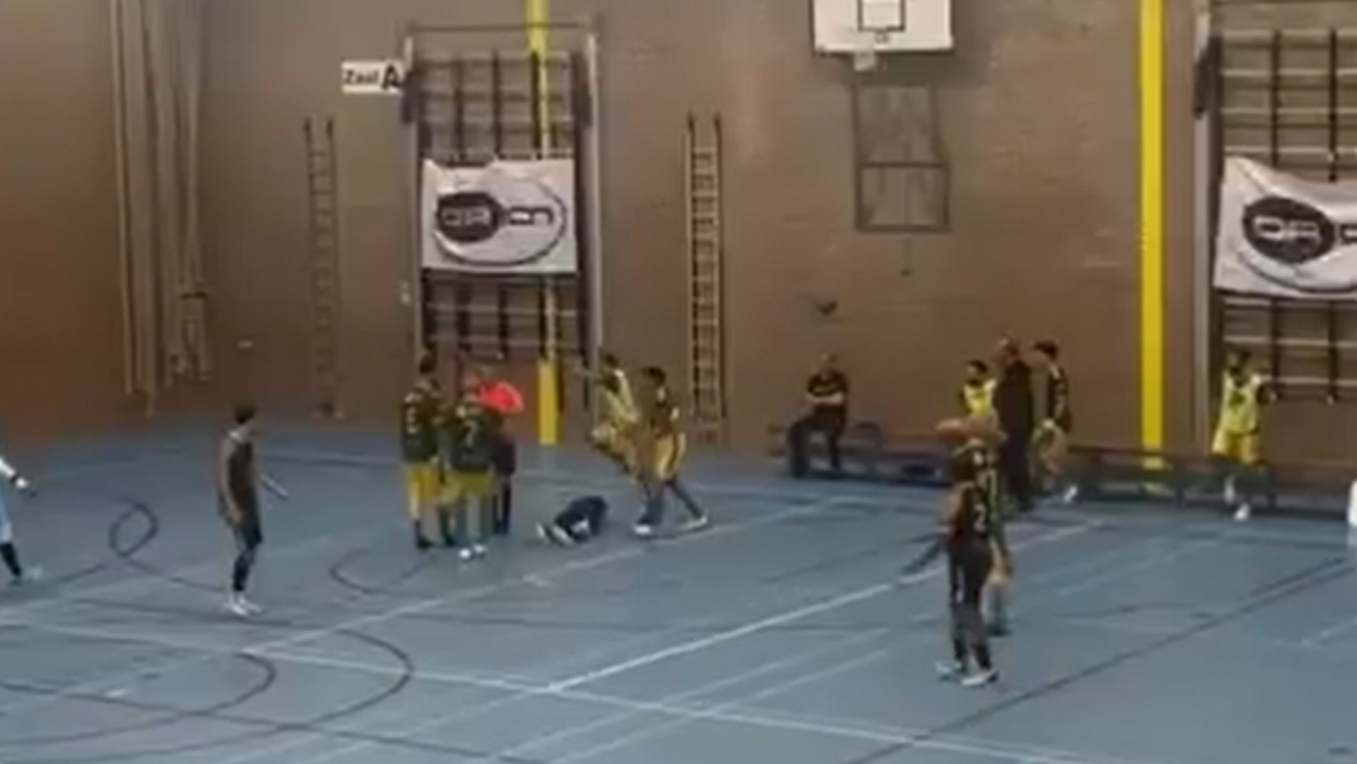 Zaalvoetballer beukt scheidsrechter omver: 'Je blijft met je poten van een ander af'