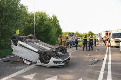 Auto belandt op zijn kop na ongeval, traumateam ingezet