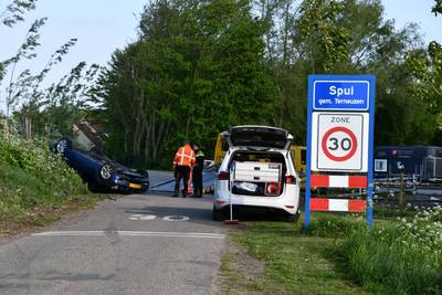 SPUI - Op de Graaf Jansdijk bij de buurtschap Spui in de buurt van Axel rende dinsdagavond rond 17.30 uur een bestuurder de nabijgelegen kreek in nadat zijn auto over de kop was geslagen bij een eenzijdig ongeluk.