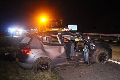 Volkswagen slaat over de kop op A32 door ‘overstekende haas’: man (24) gewond naar ziekenhuis