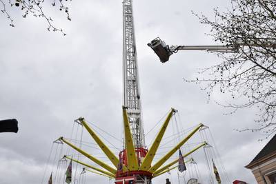 Brand in 40 meter hoge zweefmolen: medewerker klimt omhoog om brand te blussen