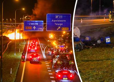 Boeren voeren opnieuw actie in Oost-Nederland. Wegen worden geblokkeerd en afval wordt in brand gestoken. De politie is niet te spreken over de protesten. Op de A50 bij Apeldoorn lagen chemische verpakkingen tussen de vlammen.