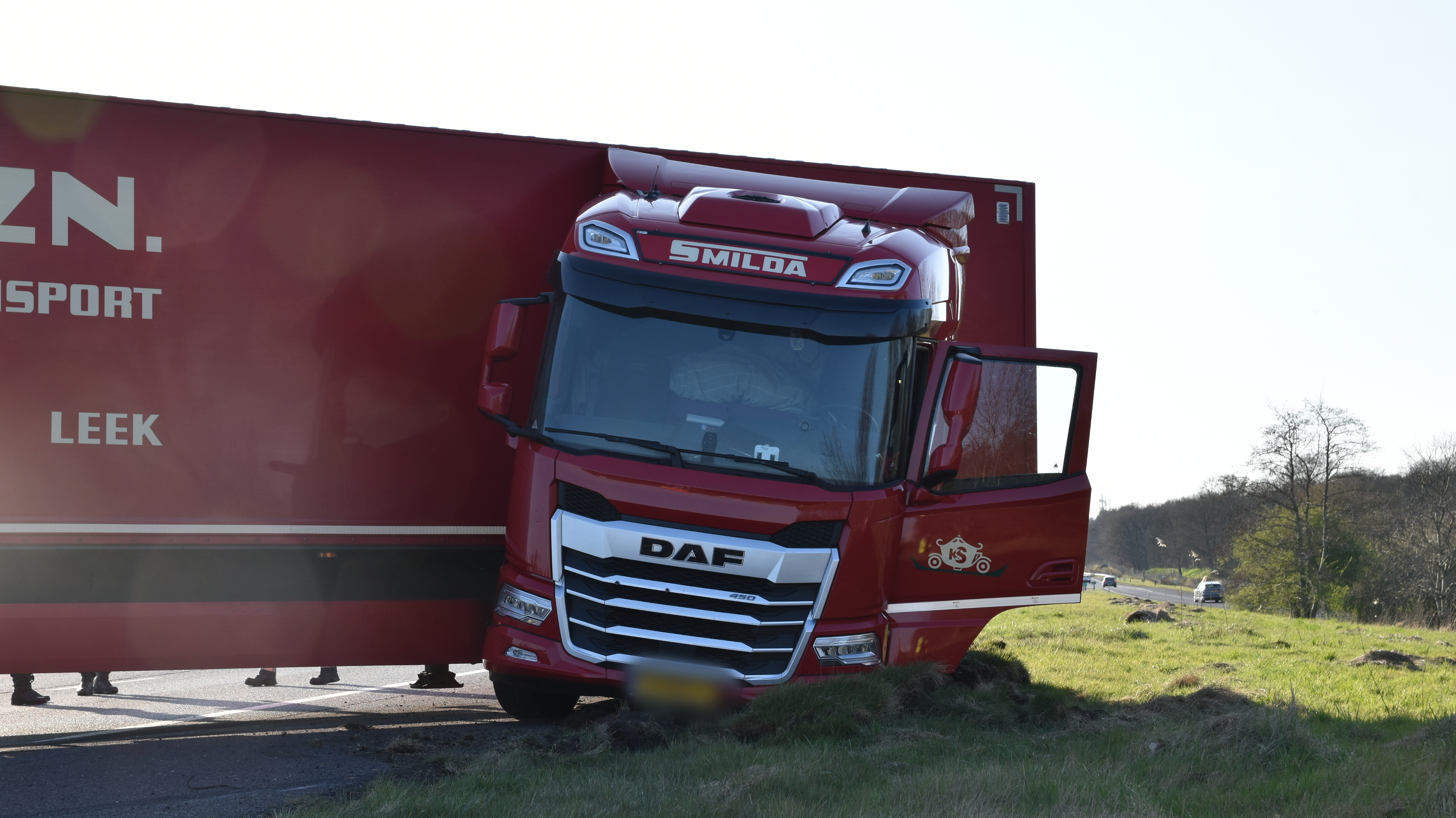 dinsdag 1 april 2025, 18:18 uurEen vrachtauto is dinsdag tijdens de avondspits dwars op de snelweg A32 komen te staan. De geschaarde combinatie stond vast in de berm ter hoogte van Steenwijk.