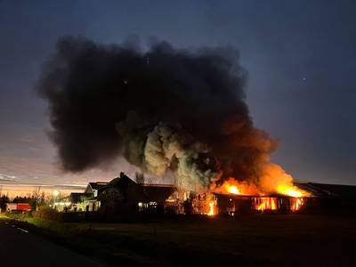 Brand verwoest schuur met kalfjes, waarschijnlijk meerdere dieren dood