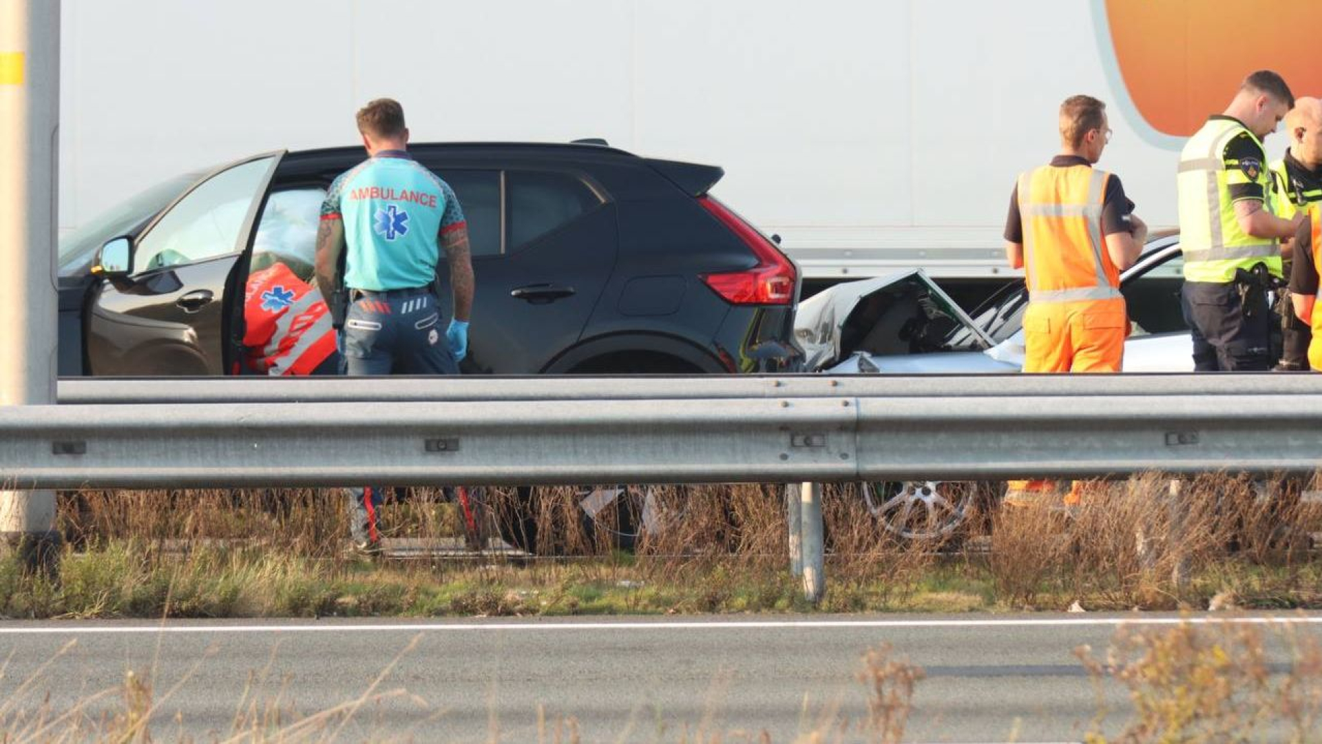 Op de A1 bij Terschuur zijn in de avondspits twee auto's op elkaar gebotst. Een van de bestuurders zou daarbij gewond zijn geraakt.