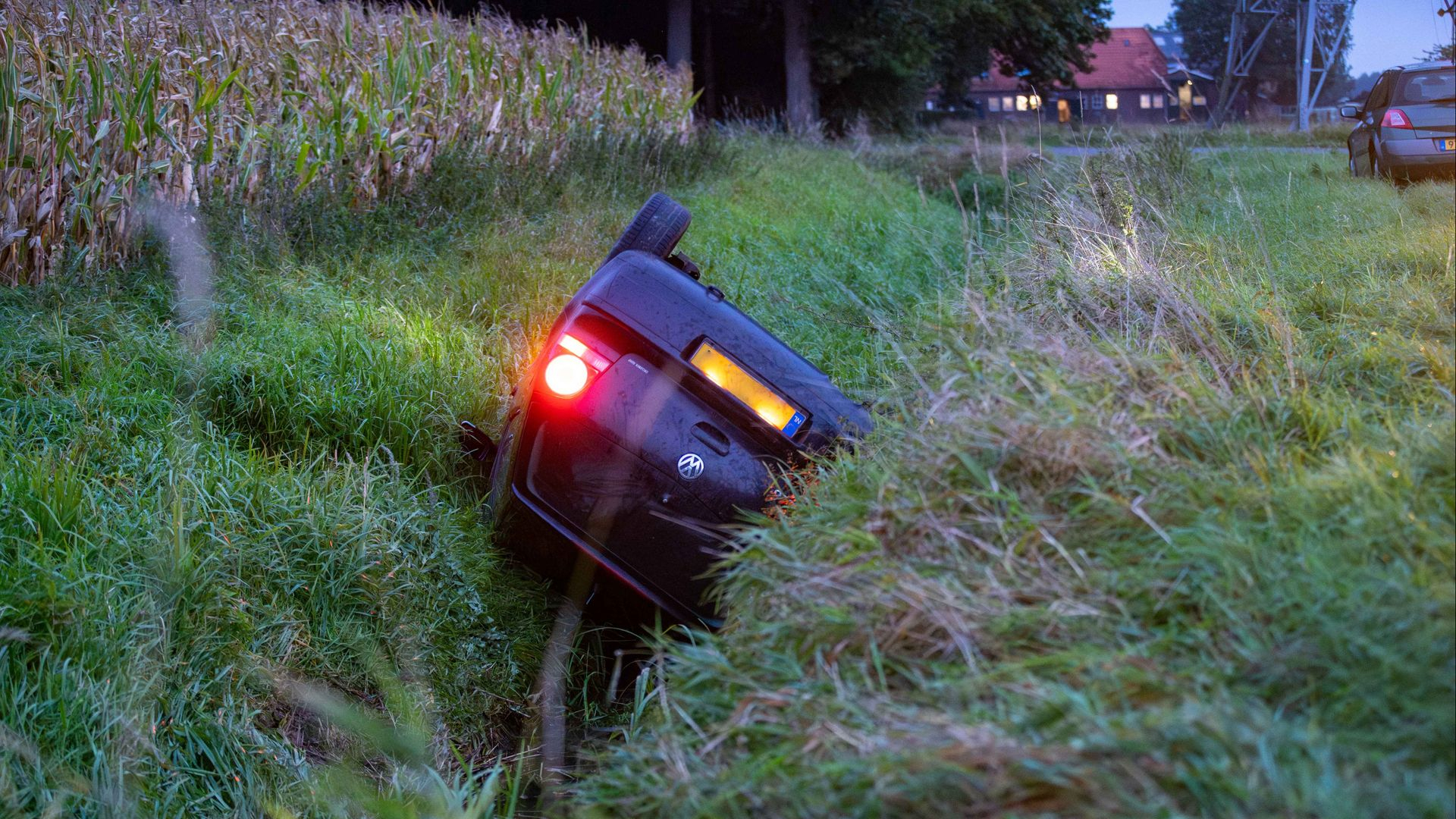 Auto belandt op de kop in smalle sloot bij Terwolde