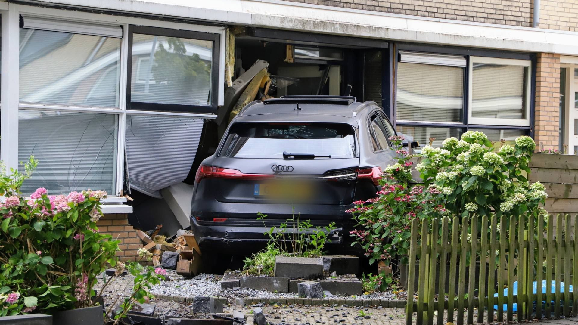 Auto rijdt met grote snelheid tegen woning, schade enorm