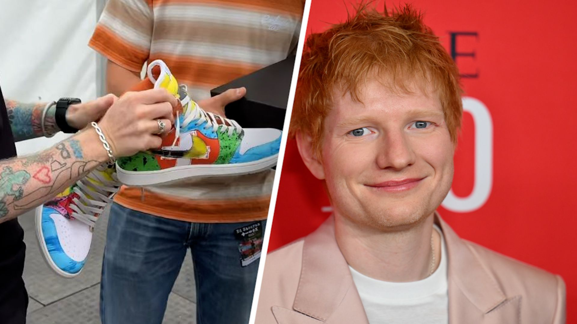 Ed Sheeran straalt met handgemaakte sneakers van Sam