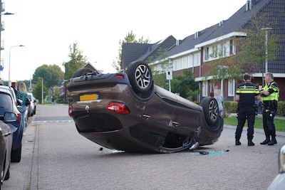 Een auto is donderdagmiddag op de kop op straat beland na het rammen van drie geparkeerde auto's op de Renesselaan in Tilburg. De bestuurder was volgens een agent dronken. Een kind dat in de auto zat, raakte gewond, maar hoefde niet mee naar het ziekenhuis.