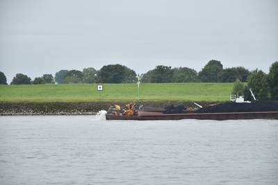 Vrachtschip dreigt te zinken in Tolkamer, brandweer doet er alles aan om dat te voorkomen