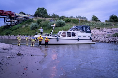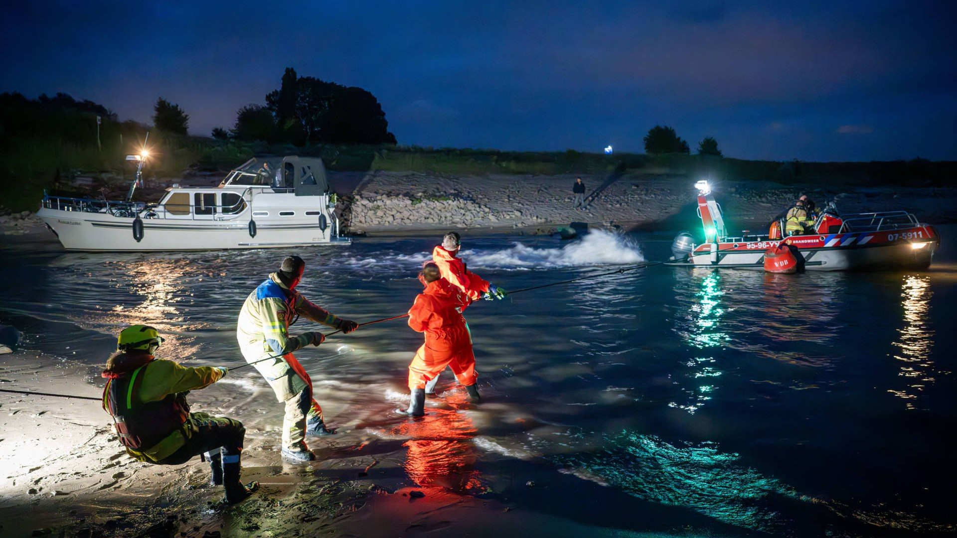 Plezierjacht ligt vast en blokkeert doorgang naar de Rijn bij Tolkamer