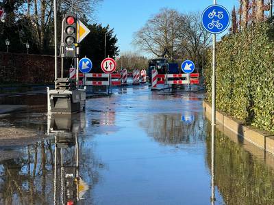 Waterleiding geraakt bij werkzaamheden: grote doorlopende weg bij Twello staat blank