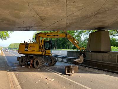 Machinist rijdt zich klem onder spoorviaduct: weg tussen Twello en Deventer hele ochtend dicht
