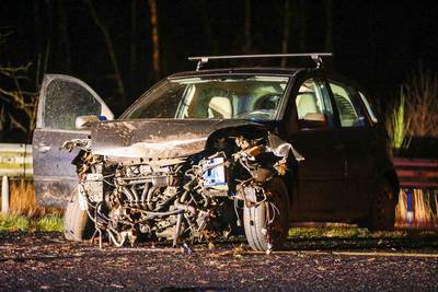 Man stapt zonder kleerscheuren uit verwoeste auto na botsing op A1 bij Uddel