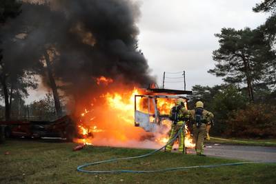 maandag 13 november 2023, 18:16 uurUDDEL – Een hevige vrachtwagenbrand heeft maandagmiddag plaatsgevonden op parkeerplaats De Strubben langs de A1 nabij Uddel. Rond 16:15 uur brak het vuur uit in een autotransporter. De brandweer is snel ter plaatse gekomen met een bluswagen en twee waterauto’s om de vlammen te doven.