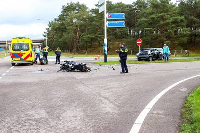 Motorrijder geschept door auto, zwaargewond naar ziekenhuis