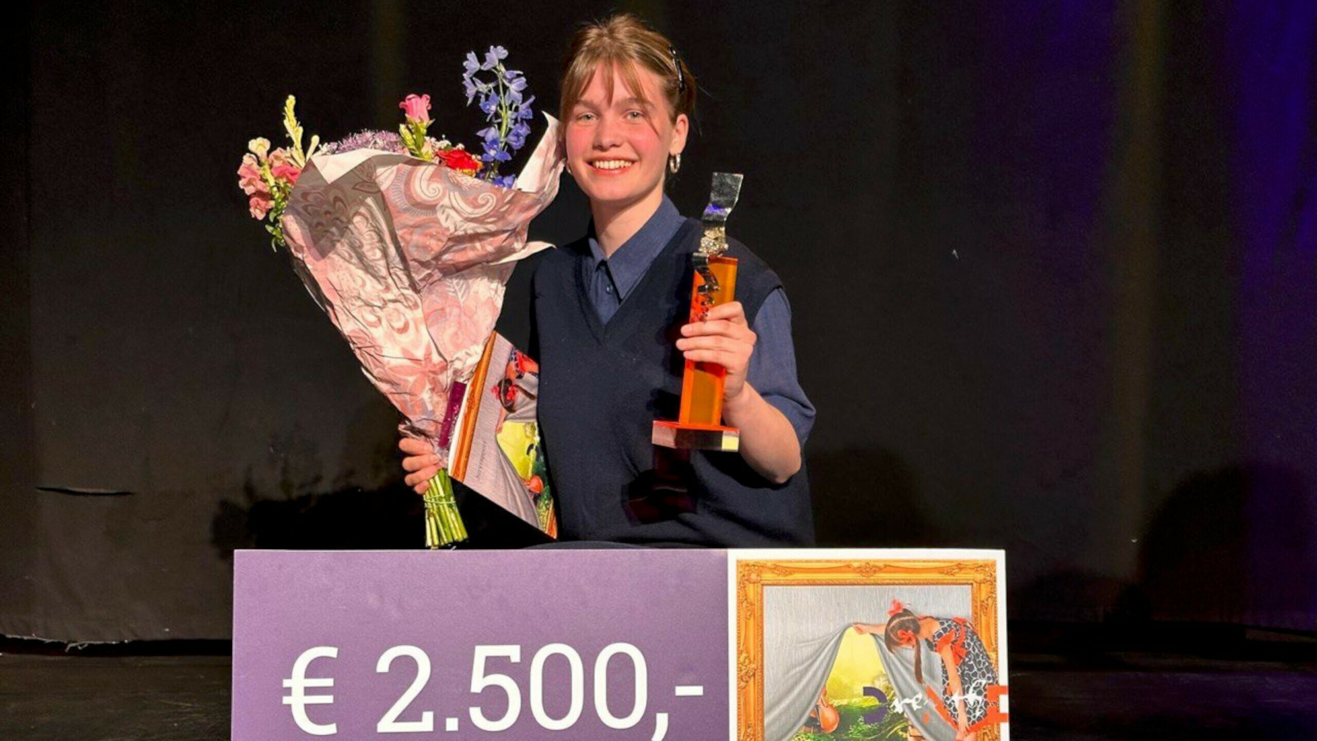 Femke Brinksma is maandagavond in het onderkomen van Garage TDI in Assen uitgeroepen tot winnaar van de Drentse Talentprijs Cultuur 2025.