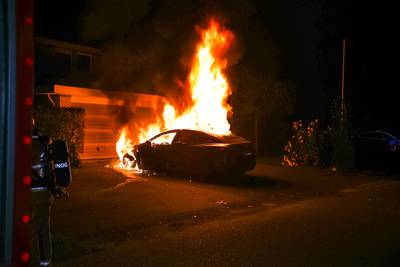 Tesla brandt helemaal uit in Ugchelen: metershoge vlammen en explosies