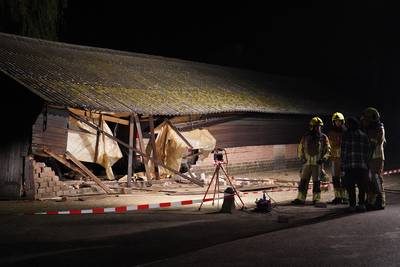 Boerenschuur staat op instorten nadat bestelbus binnenrijdt