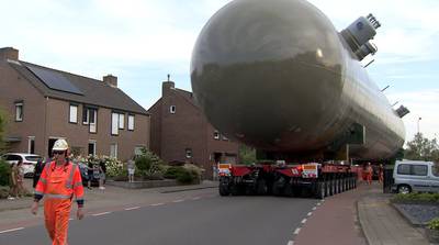 zaterdag 8 juli 2023, 19:30 uurVrijdagavond werd een gigantische stalen opslagtank door de Limburgse plaats Urmond vervoerd. De opslagtank werd van de haven van Stein naar chemiebedrijf Chemelot gereden. Het gevaarte is 53 meter lang en heeft een doorsnede van 8 meter.