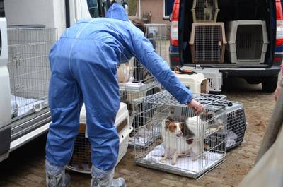 In een woning in Vaassen zijn 22 honden in beslag genomen. De dieren werden gewond en in een sterk vervuild huis aangetroffen. Het gaat om 5 volwassen honden en 17 pups. De eigenaar is aangehouden.