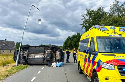 Automobilist ramt lantaarnpaal en komt op de zijkant tot stilstand