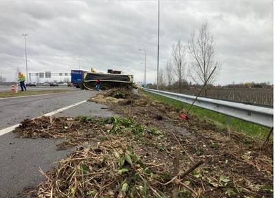 Vrachtwagen kantelt, verbindingsweg uren dicht