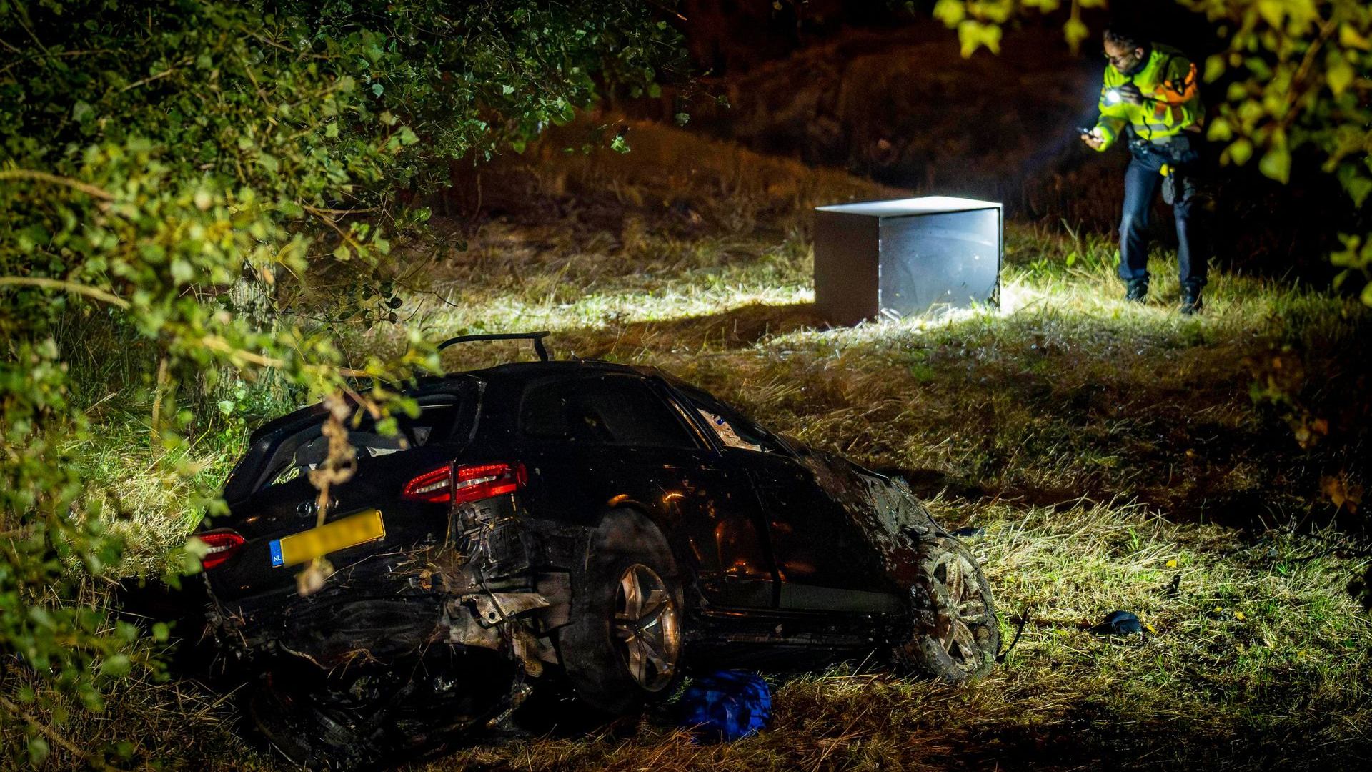 We doen onderzoek naar de toedracht van het ongeluk. Onderzoeken als deze nemen doorgaans veel tijd in beslag. Dat is omdat het zorgvuldig moet gebeuren en het maar één keer goed gedaan kan worden. Onze bevindingen dragen we daarna over aan het Openbaar Ministerie. Ook de betrokkenheid van de inzittenden bij een mogelijk misdrijf wordt nog onderzocht. Bij de auto is namelijk een kluis aangetroffen die vermoedelijk is weggenomen bij een inbraak in Vaassen. We kunnen op dit moment niet op de details van dat onderzoek ingaan. Burgernetmelding voor mogelijk vierde inzittende Donderdagochtend heeft de politie via Burgernet aan mensen gevraagd om uit te kijken naar een persoon. Mogelijk is het ook een slachtoffer van het ongeval. Hij is nog niet gevonden. 2024463745 ER