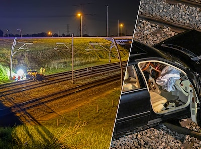 Twee gewonden nadat auto uit bocht vliegt en op Betuwelijn belandt, bestuurder onder invloed
