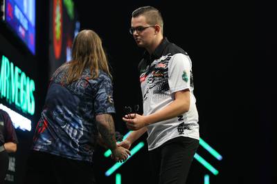 zondag 12 november 2023, 15:30 uurNa de pijnlijke nederlaag op de Grand Slam of Darts tegen Ryan Searle (Van Veen verspeelde zaterdag een 4-0 voorsprong in legs), zat er zondag voor Gian van Veen maar één ding op: winnen van de Noord-Ier Nathan Rafferty om zicht te blijven houden op de volgende ronde. Dat is de Nederlander niet gelukt: 2-5. Berry van Peer beet zondag flink van zich af, maar moest zijn meerdere erkennen in Chris Dobey: 4-5.