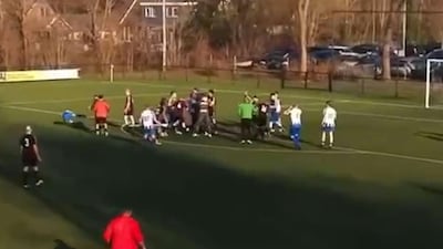 KIJK | Amateurwedstrijd loopt uit de hand: voetballers op de vuist