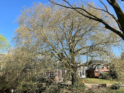 VEGHEL - De monumentale plataan aan de Aa, achter de bibliotheek in Veghel wordt met spoed fors gesnoeid. Dit is volgens de gemeente Meierijstad noodzakelijk omdat er razendsnel een onveilige situatie is ontstaan.