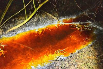 Stromend beekje kleurt bruin en oranje, brandweer staat voor raadsel