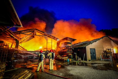 Zeer grote uitslaande brand in loods