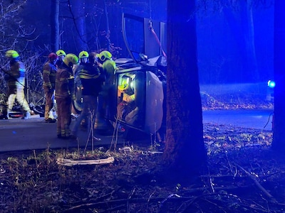 een auto is vrijdagmiddag tussen Nunspeet en Vierhouten tegen een boom gebotst en op de zijkant tot stilstand gekomen. Er is een persoon gewond naar het ziekenhuis gebracht.