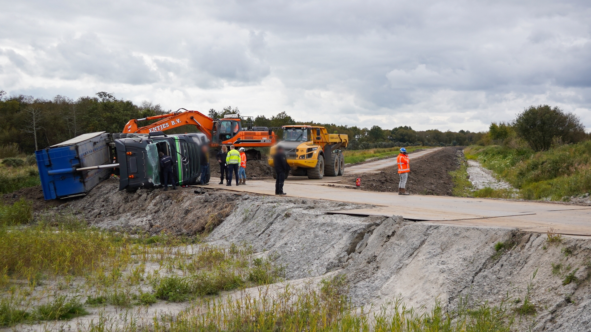 Vrachtwagen gekanteld tijdens werkzaamheden