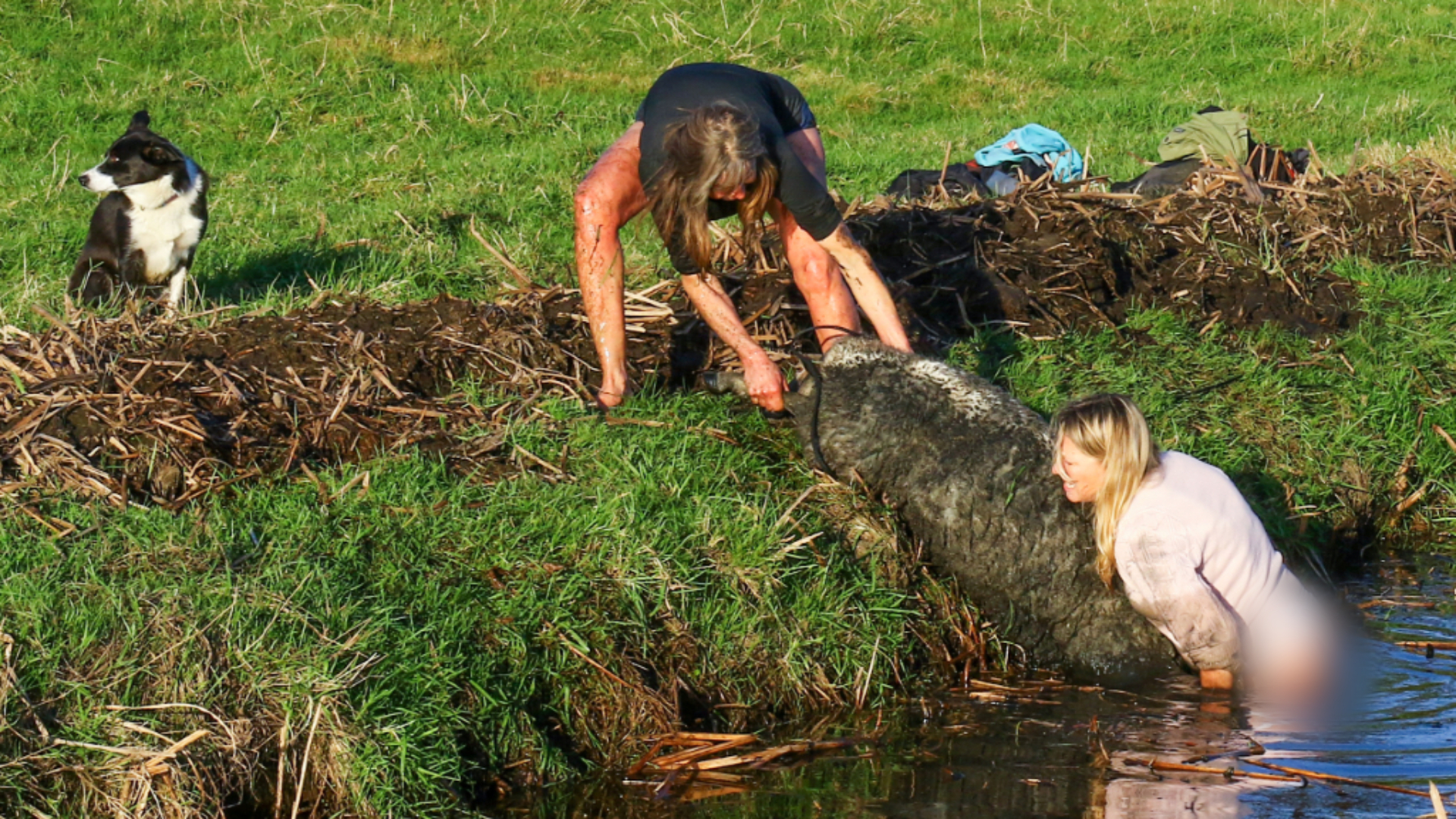Vrouwen springen in ijskoude sloot om kudde schapen te redden