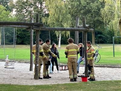 Tienermeisje zit vast in schommel in Volkel, brandweer schiet te hulp