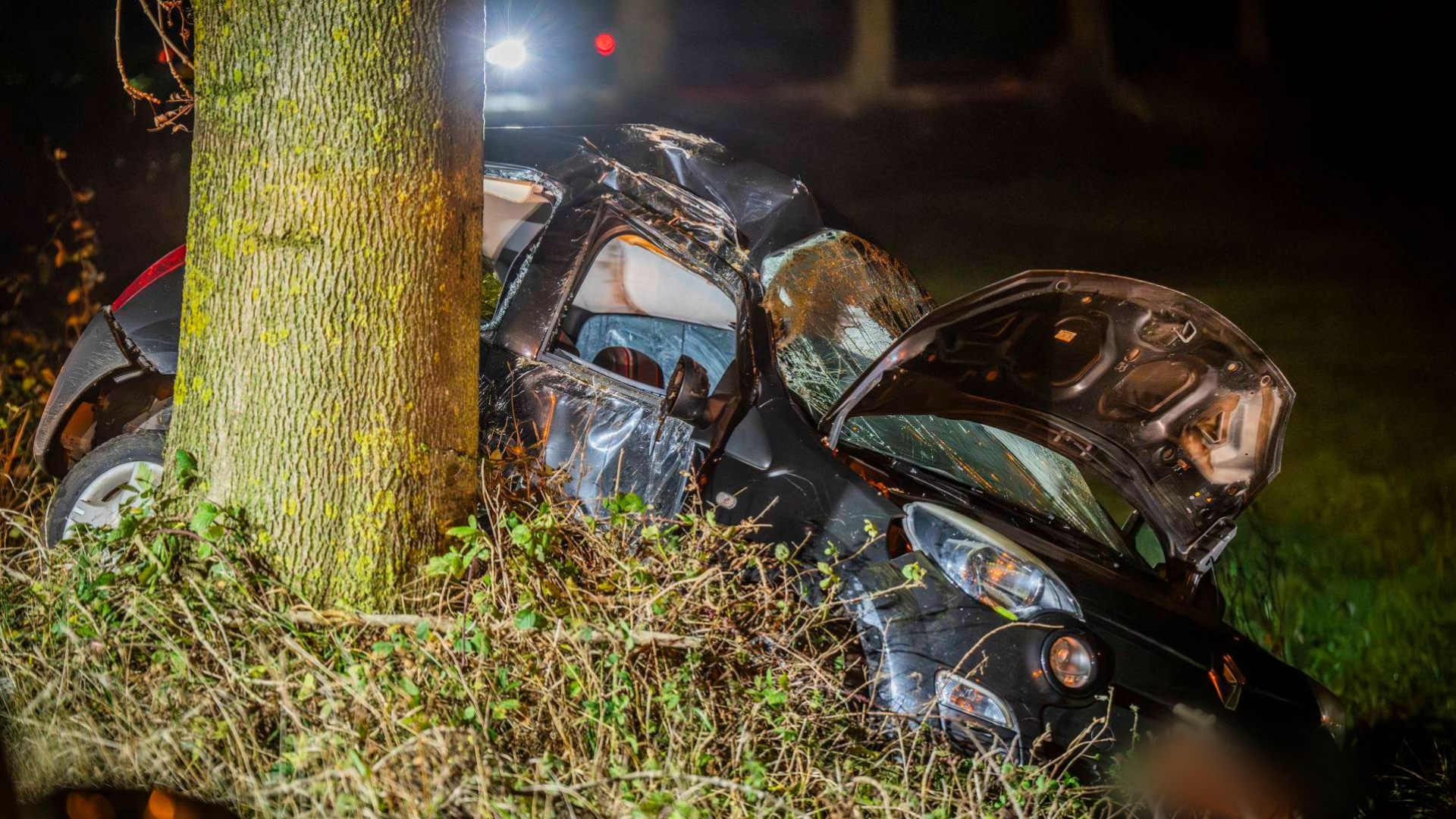 Persoon overleden bij ernstig ongeluk: auto ramt boom, reanimatie mag niet meer baten