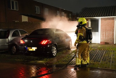 Auto verwoest door brand, buurtbewoners slaan alarm