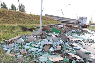 Weg bezaaid met duizenden blikjes Heineken na openscheuren vrachtwagen